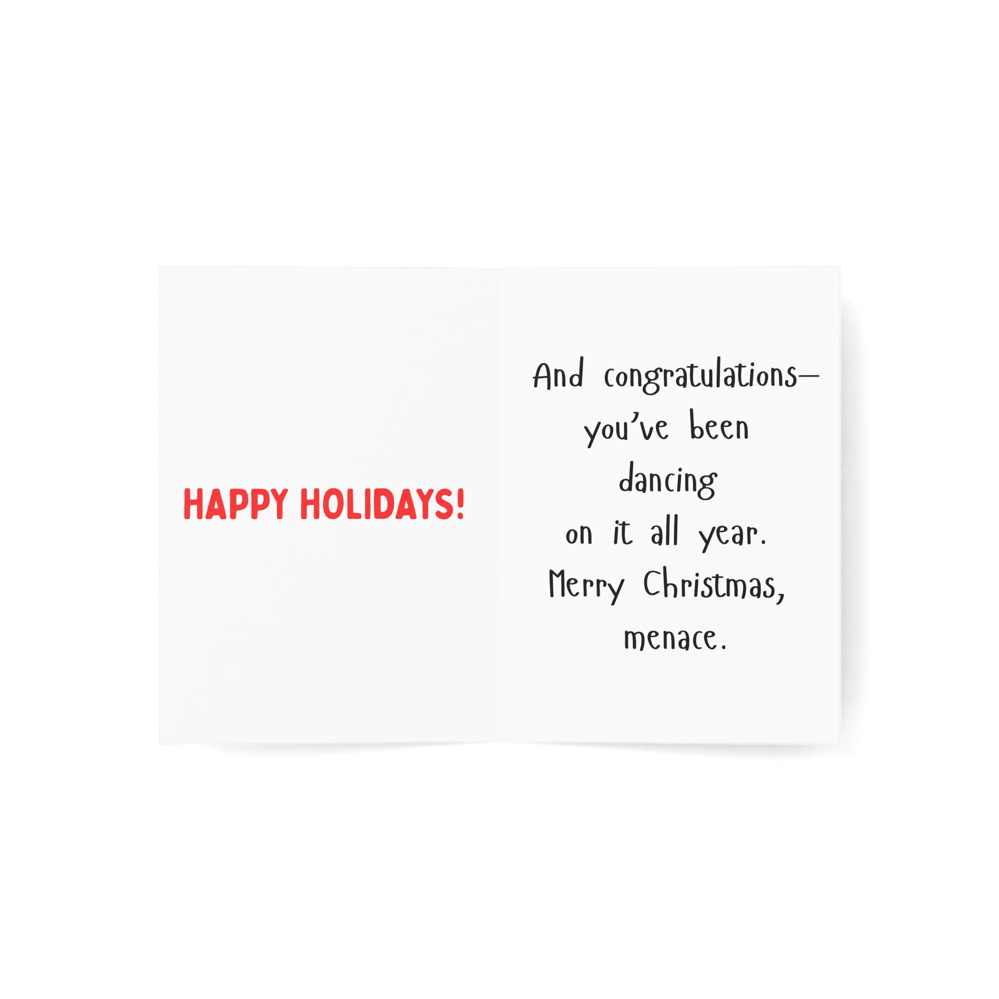 Ideal for friends, family, coworkers, or anyone you don’t totally hate, this card brings just enough warmth to seem sincere… with enough edge to keep things interesting.
