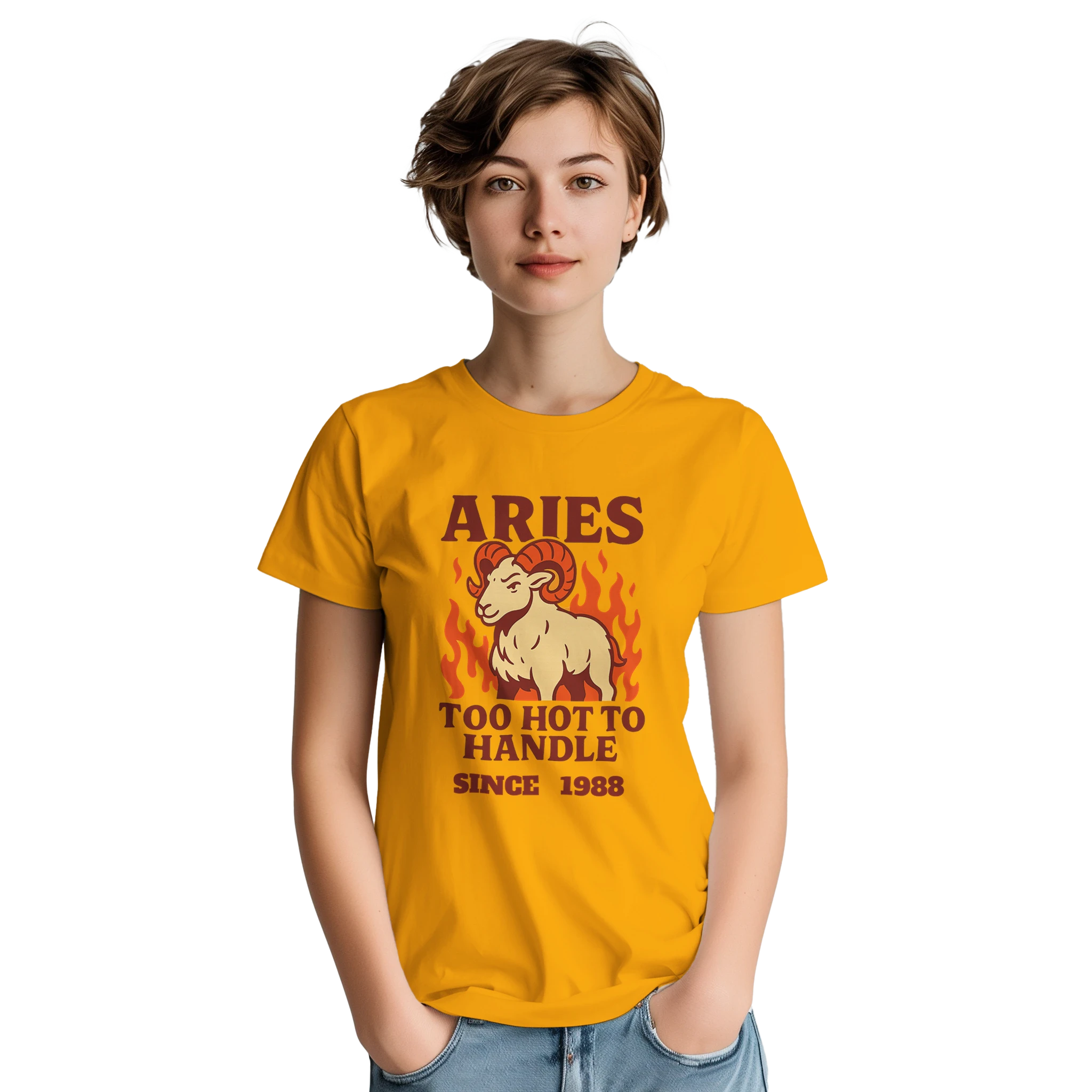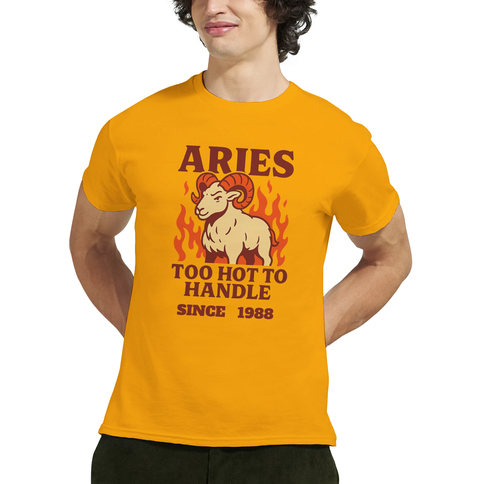 This one's for the firestarter of the zodiac — bold, chaotic, and Too Hot to Handle since birth. This personalised Aries t-shirt lets you proudly rep your ram energy with a retro, flame-filled design that’s as intense as your opinions.