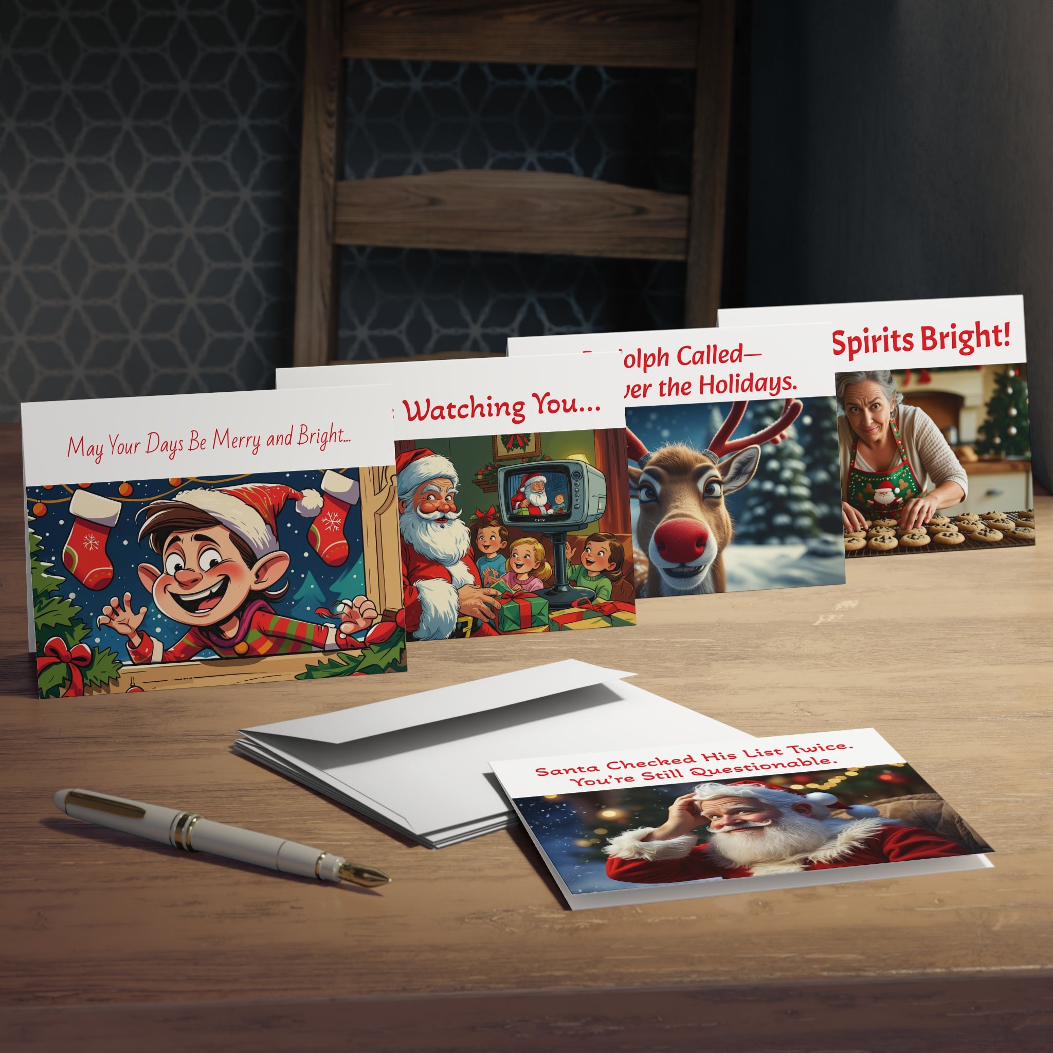 Brighten someone’s holiday—or roast them lovingly—with this brutally honest pack of snarky Christmas cards. Whether you're low-key festive or full-on Grinch, these witty cards deliver just the right amount of cheer (and side-eye). From Santa's constant surveillance to Rudolph's burnout, each card serves up sarcasm with a sparkle.