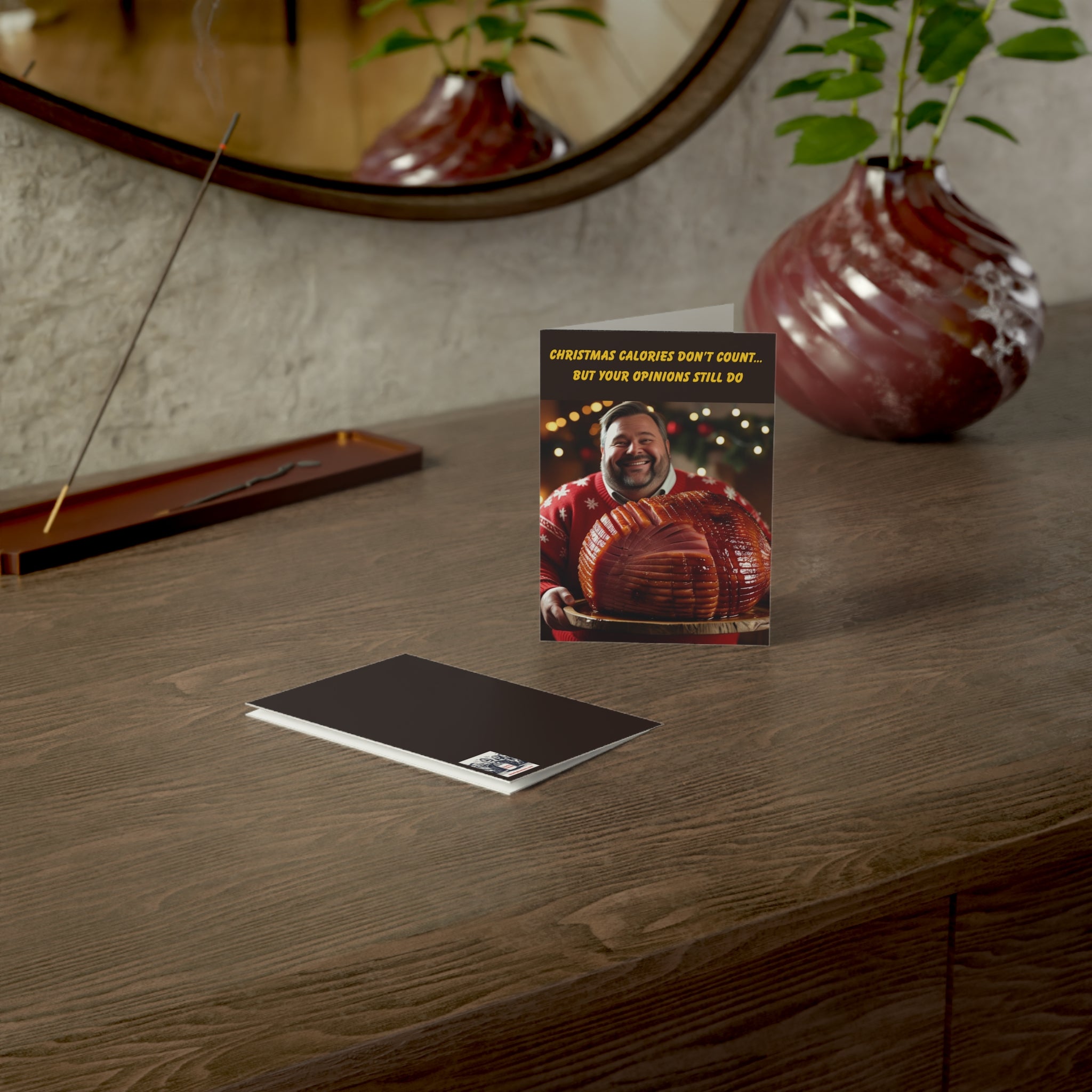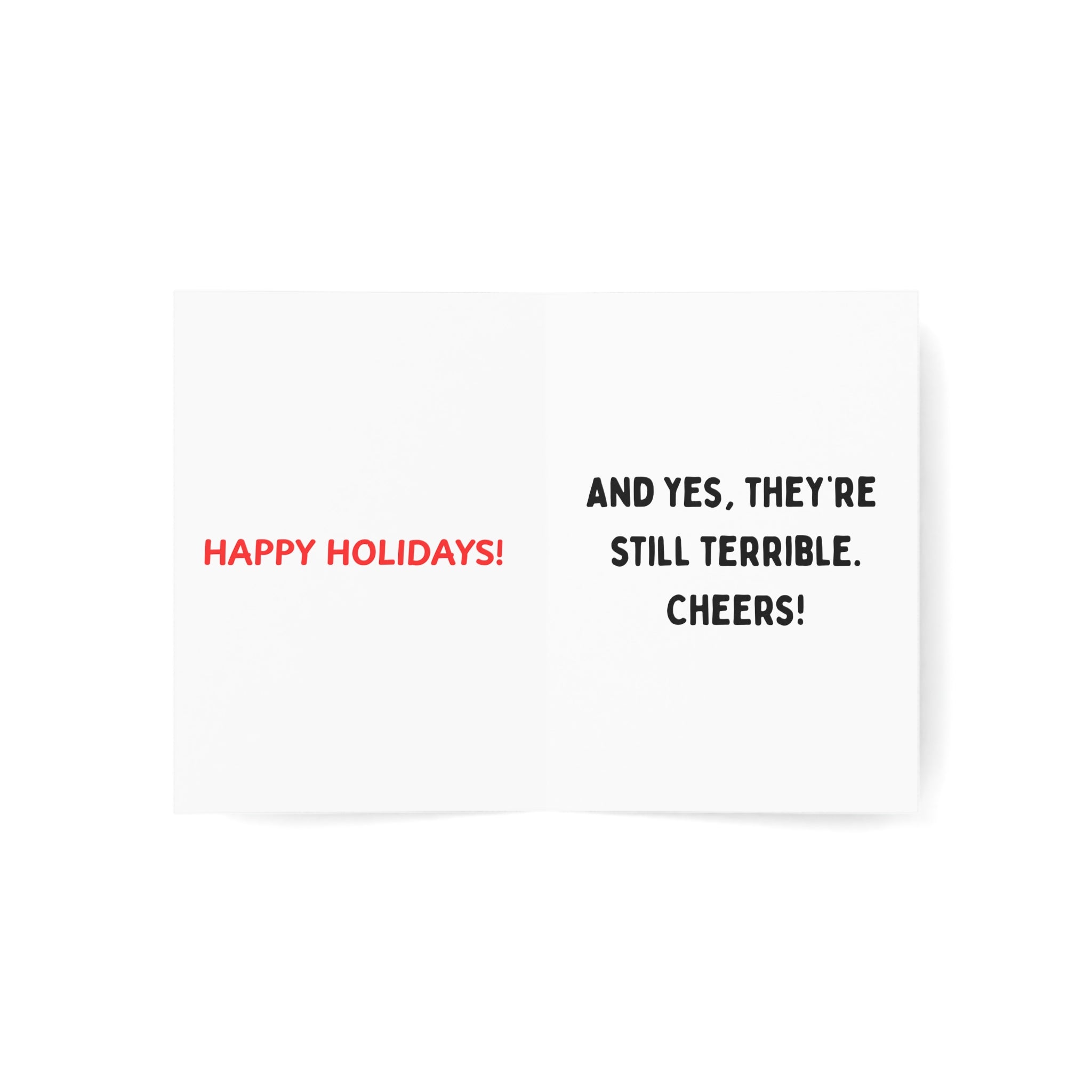 Whether it’s for Christmas, birthdays, or one of those “I guess I should say something” moments, this card lets you do the bare minimum with maximum flair. The front cover wraps around like a warm hug you didn’t mean to give, and it even comes with an envelope—because nothing says “I tried” like putting a card in something.