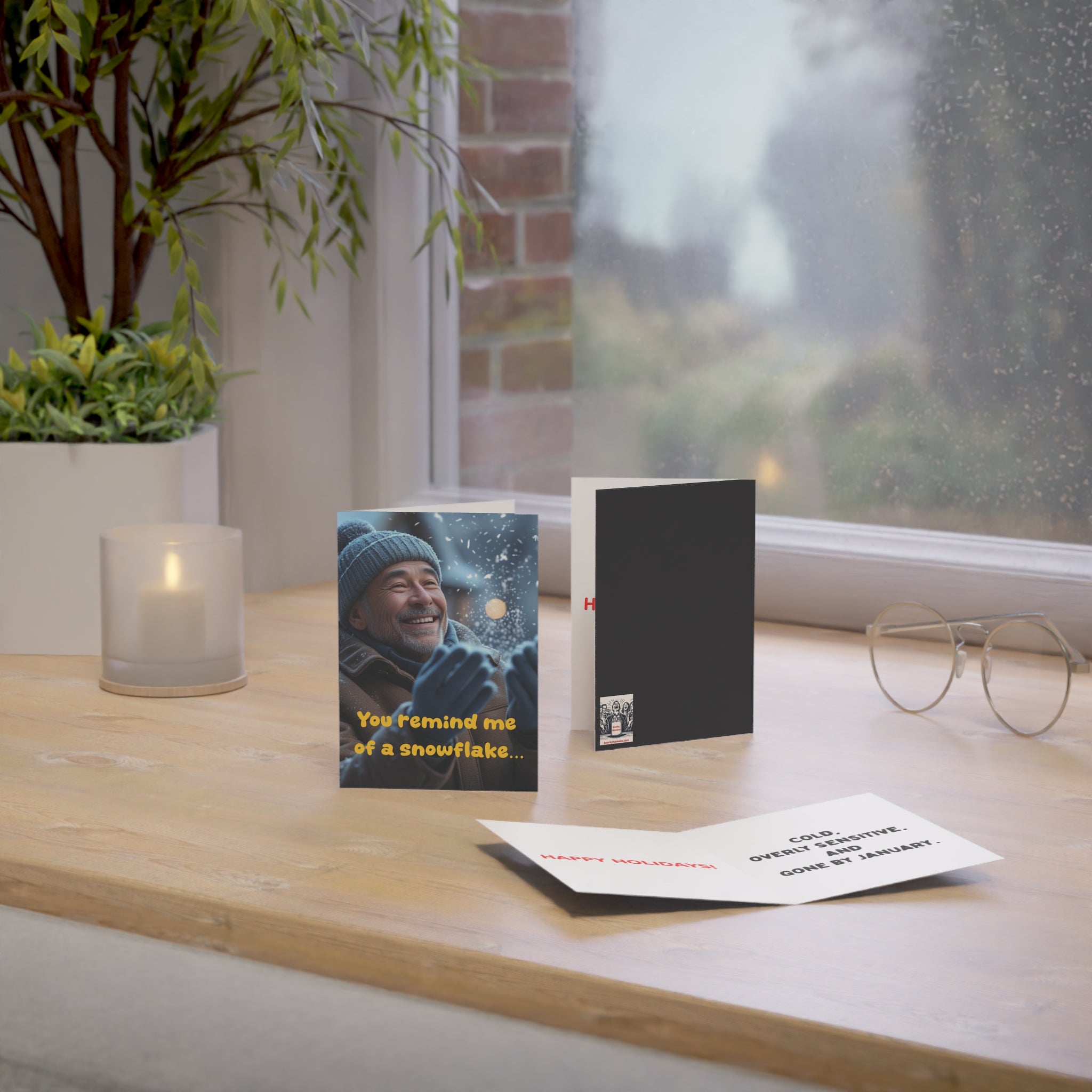 Say hello to the card that’s doing all the emotional heavy lifting for you. Whether you forgot a birthday (again), want to appear festive without participating, or just need to one-up everyone else’s basic Hallmark effort—this single vertical greeting card is here to make you look like a functioning human with feelings.