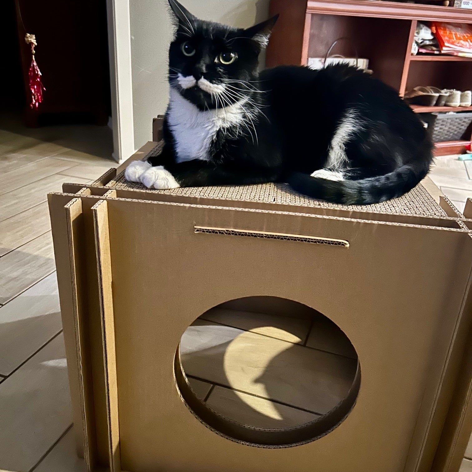 Mister is a “Chonky” cat and loves the Cat House because the hole is big enough for him to get through!!!! It is not like the other Houses or Caves that are built for kittens or smaller cats----Mister is CHONKY!