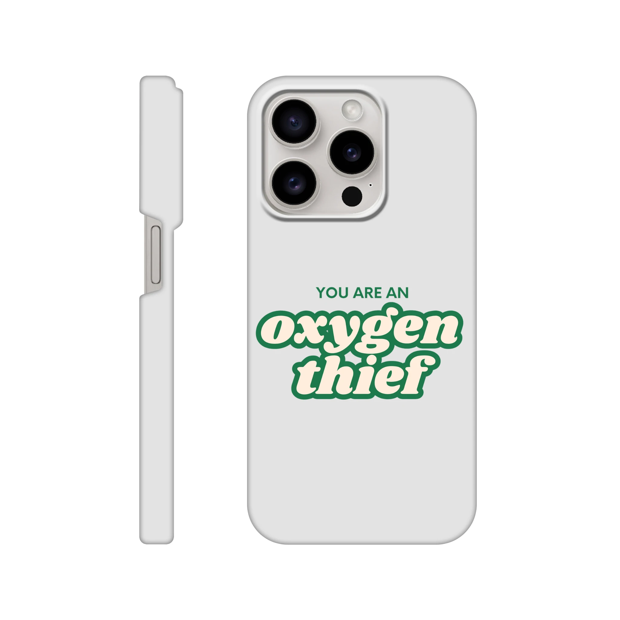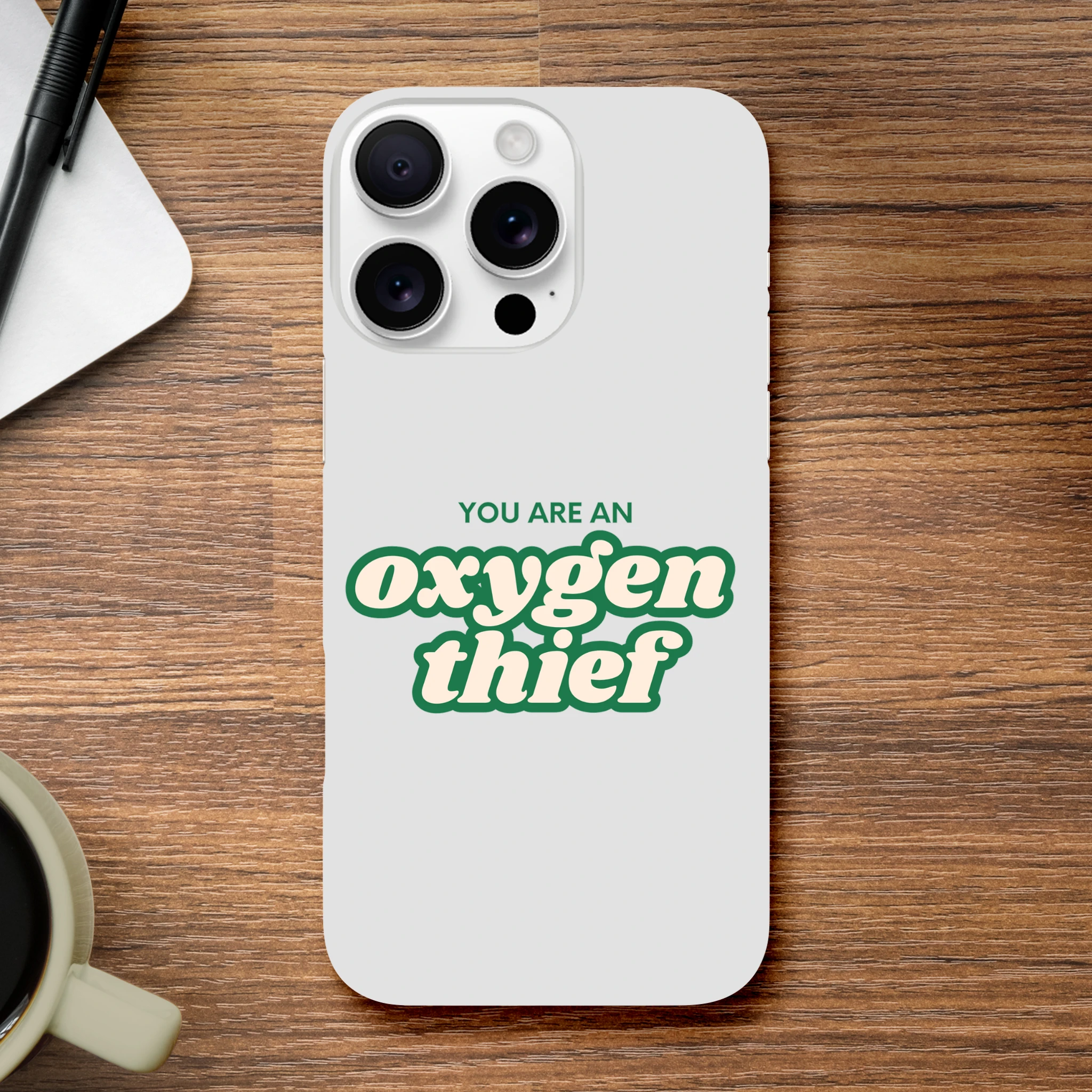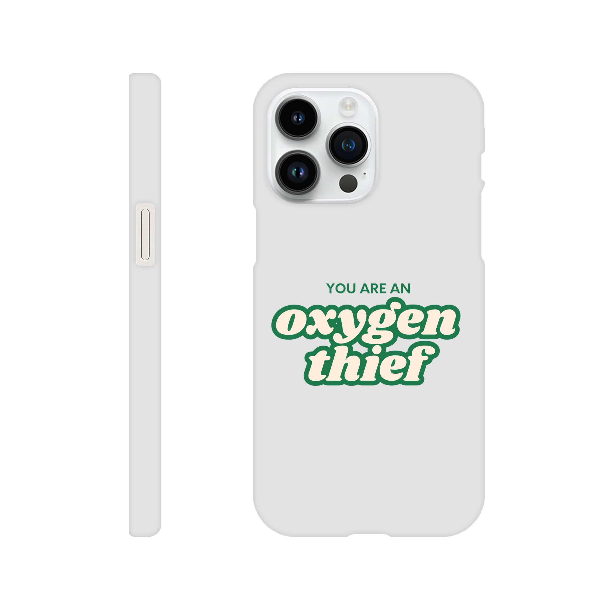 This slim case is as sleek as your ability to drain the life out of a room. Combining a super-thin design with robust durability, it’s perfect for those who have no problem taking up space—just not oxygen. With a premium white base and wraparound print, it’s the perfect way to remind people who’s really stealing the air.